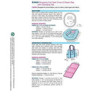 KWIK SEW Shopping Cart Cover Pattern Diaper Bag, Changing Pad K3643