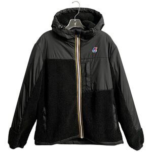 K-Way Jacket Men Size XL Black Le Vrai Orsetto 3.0 Sweatshirt Teddy Sherpa Hood