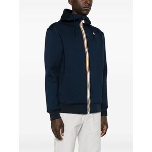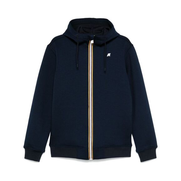 :navy blue scuba jersey front zip fastening rubberised logo detail drawstring hood long sleeves ribbed cuffs and hem two side inset pockets unlined