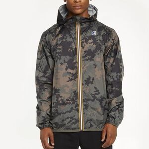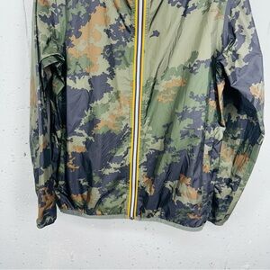 K-Way unisex Size Medium Le VTAI 3.0 Claude Graphic Camo Camouflage Hooded Rain Jacket in good preowned condition.