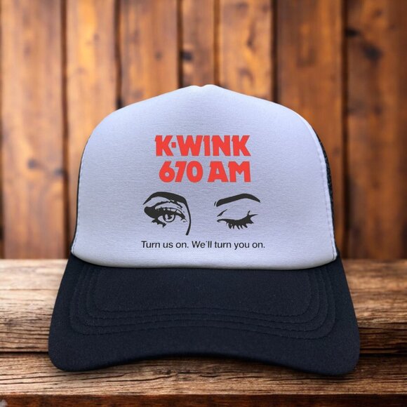 K-Wink 670 AM Mens Trucker Hat Black 70s California Radio Ad Vintage Logo Cap