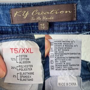 KY Creation high-waist Blue Jeans Straight Leg Raw Hem Size XXL-T5, Cotton blend