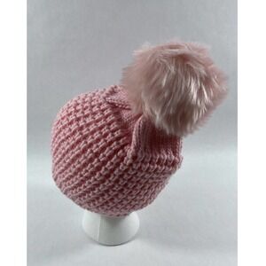 KYI KYI WOMEN’S FAUX FUR POM POM CLASSIC KNIT BEANIE PINK , ONE SIZE .