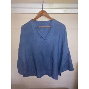 KYLA SEO 100% Linen Popover Top Blouse Blue Size Large L HANDMADE BOXY LAGENLOOK