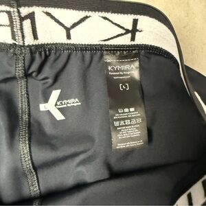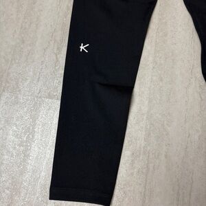 black leggings with KYMIRA branding. Perfect for workouts or casual wear.