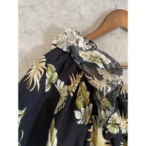 KY'S Dress 2XL Black Tropical Hawaiian Muumuu Midi Ruffle Off Shoulder Pocket