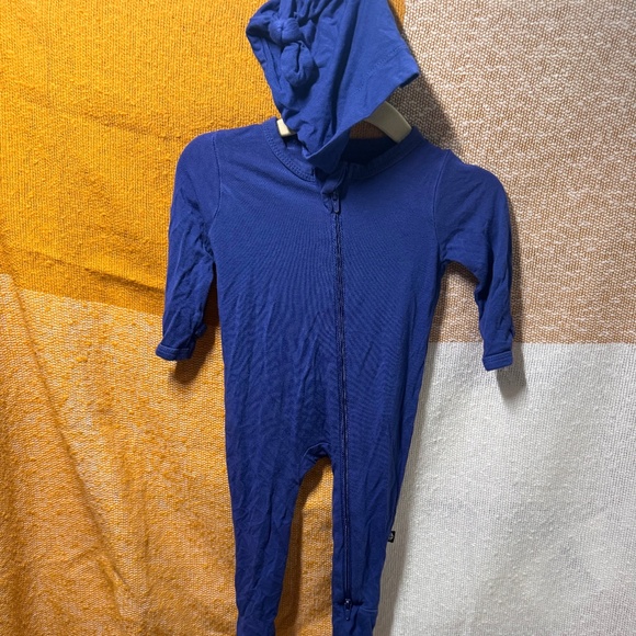 KYTE BABY Baby Zippered Bamboo Footie in -Royal with matching knotted hat 0-3