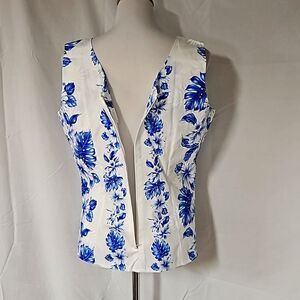 KY's Hawaiian Blue Hibiscus Print Cropped Back Zip Sleeveless Cotton Blouse