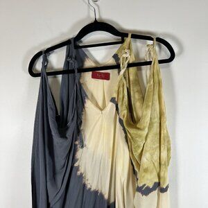 Effortless charm defines this Ky's tie-dye maxi dress, a standout piece that speaks volumes. Draped in a mesmerizing palette of neutral and bold hues, the dress cascades with an easy, flowy silhouette that embodies relaxed sophistication. The flattering V-neck design elongates the neckline, while the sleeveless cut ensures breezy comfort on warmer days. Perfect for a beachside brunch, a garden party, or an impromptu getaway, this dress promises to be your go-to choice for easy elegance.