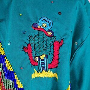 Keywords: spring summer fall winter cowgirl western southwestern southern ranch country rodeo wrangler farm girl fringe equestrian riding horse show line dancing beaded embroidered sequins colorful retro vintage unique art to wear kitschy gift gifts birthday holiday
