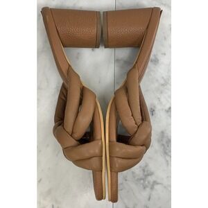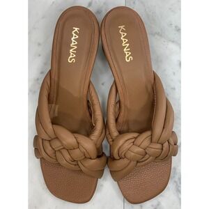 Kaanas Bekasi Sandals Sz 7 Coffee Knot Slip On Leather 2.75" Block Heel EUC