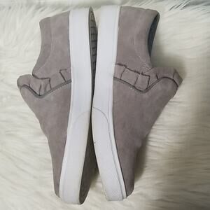 Kaanas grey suede slip on sneakers in excellent condition! Small amount of sticker residue on in inner sole. Light amount of wear on the suede and bottoms.