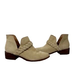 Kaanas Leather Braided Strap Boho Western Ankle Booties Tan Womens Size 10