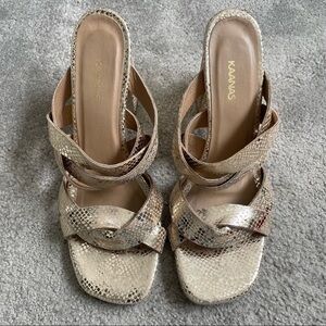 Kaanas Metallic Gold Geneva Snake Pretzel Strappy Block Heel Sandals EUC Size 9