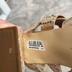 Feast your eyes on the new Kaanas Geneva Snake Gold Heel! Featuring a 70s inspired pretzel 3 inch heel and a leather textured metallic snakeskin. Funk up your look with these comfy heels!