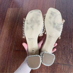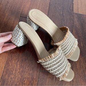 Kaanas Open Toe Heels Shoes Sumatra Tan Block Frayed Woven Sandal Womens Size 9