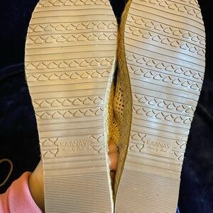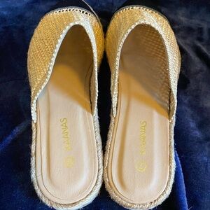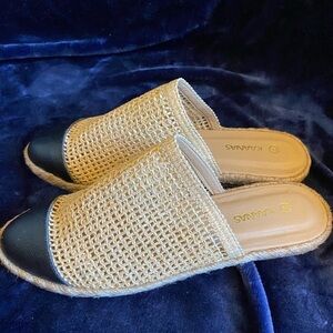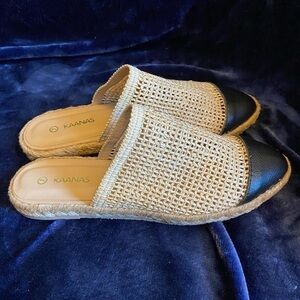 Kaanas Palau Fishnet Mule Espadrille Custard open weave mule with a cap toe. Size 7