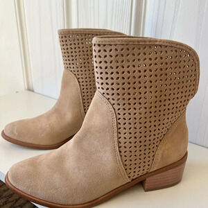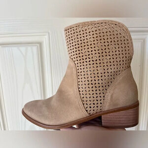 Kaanas Warsaw Perforated Suede Leather Ankle Bootie in Camel Size 6