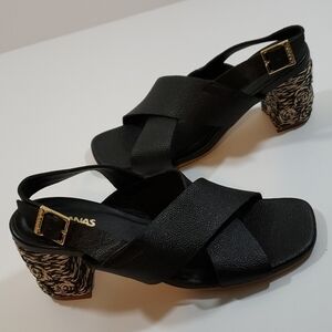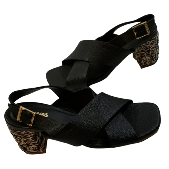 Kaanas~Size 6~Black Leather Sandals Java-Blk.