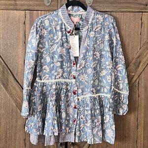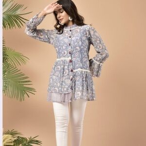 Kaarah by Kaavya Bhandari Block Printed Floral Chanderi Blouse Size Medium NWT