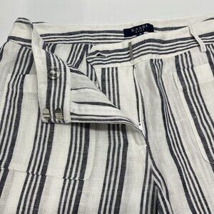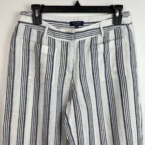 Kaari Blue 100% Linen Wide Leg Cropped Pants Culottes Size 4 Pockets Casual