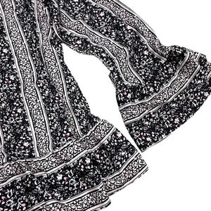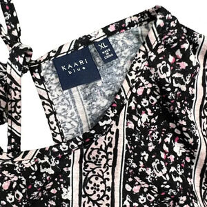 Kaari Blue Black Floral Bell Sleeve Blouse XL