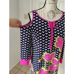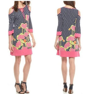 Kaari Blue Cold Shoulder Floral Mini Dress Pink Navy 3/4 Sleeve Jersey Shift M
