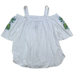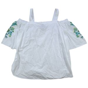 Kaari Blue Curvy Blouse Womens 3X White Embroidered Botanical Top Spring Summer