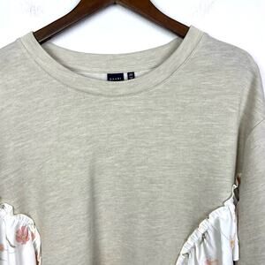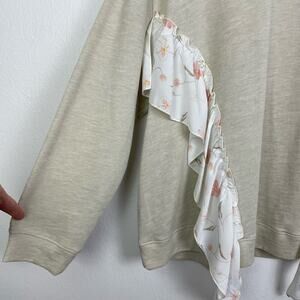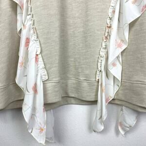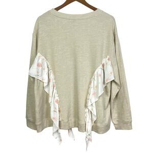 Kaari Blue Curvy Cream Tan Ruffle Floral Detail Pullover Crewneck Sweatshirt