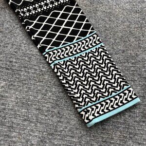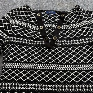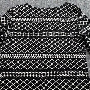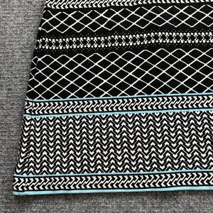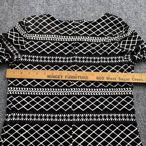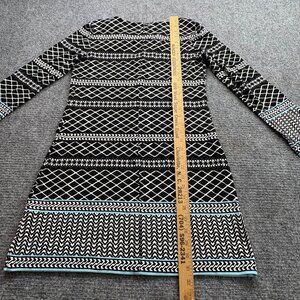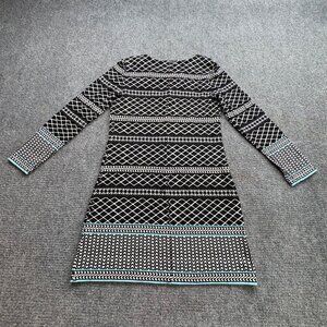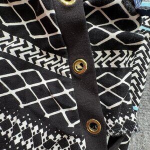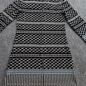 Kaari Blue Dress Womens XS Black White Geometric Button Accents Tribal Preppy