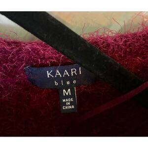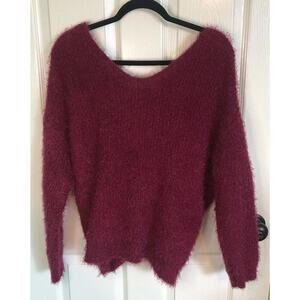 Kaari Blue Fuzzy Back Knot Long Sleeve Raspberry Eyelash Sweater Size Medium