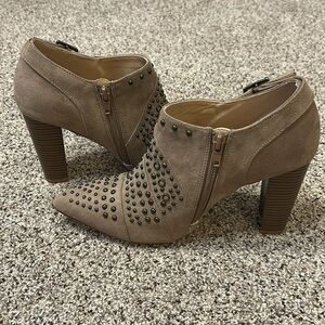 EUC like new condition Kaari Blue Tan Studded Kristen Suede Heel Booties size 8