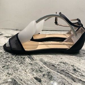 Kaari Blue Women's size 10M Cyndi Black Flats Satin Sandals