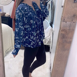 Kaari Blue floral babydoll top size large