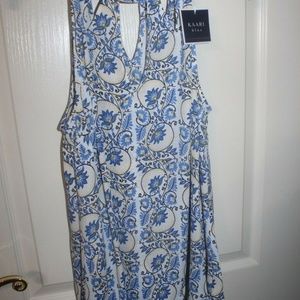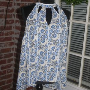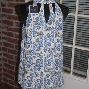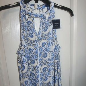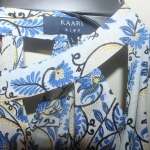 Kaari Blue floral print sleeveless top Blue Yellow Black White NEW Size Large