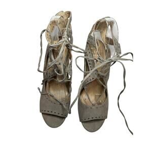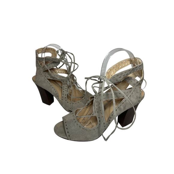 Kaari Size 7.5 Hannah Open Toe Lace Tie Up Cutout Heel Sandal Gray Vacation Boho
