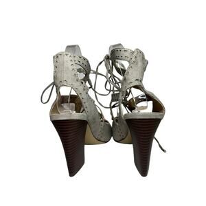Kaari Blue Size 7.5 Hannah Open Toe Lace Up Cutout Block Heel Sandal Gray Party