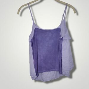Kaari blue Up Cycled lavender ruffle flowy blouse tank top Small