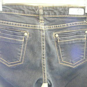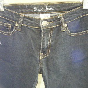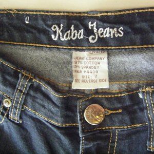 Kaba Jeans. Dark blue skinny leg with gold stitching. Double back pocket. Size 7 (I believe Juniors 7). Worn once. Recently unpacked after years of storage. In great condition. Price firm. Thanks for shopping!