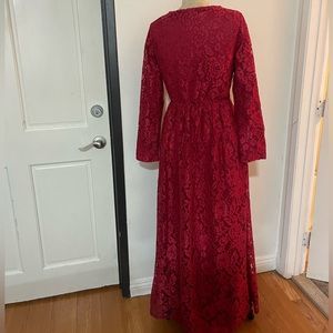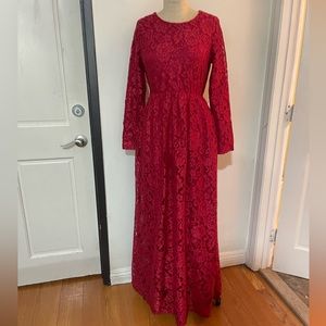 Kabayare Red Lace Formal Dress Long Sleeve Sz S Holiday Christmas Prom Party