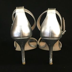 Good condition. One rhinestone missing on right top strap. 3-1/2 inch heel