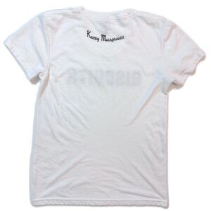 A rare find! This white tee features black velvety lettering on front. "Kacey Musgraves" at back neck in a rodeo font.