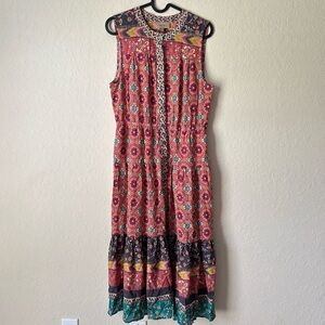 Anthropologie Kachel | Women's Boho 100% Silk Umbria Midi Dress