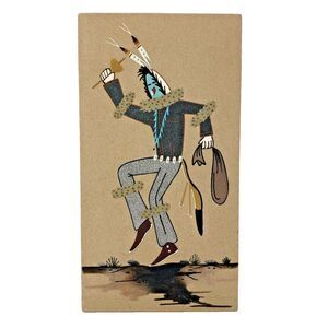 Kachina Sand Wall Art Navajo Native American Painting Panels VTG Set of 2 Signed