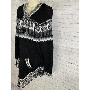 Kactus Artesanias Hooded Alpaca Knitted Pullover Tasseled Front Pocket One Size