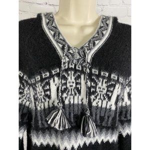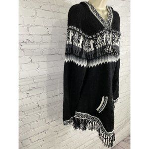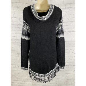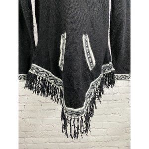 Kactus Black White Pullover Knitted Fringe Tassled ONE SIZE.