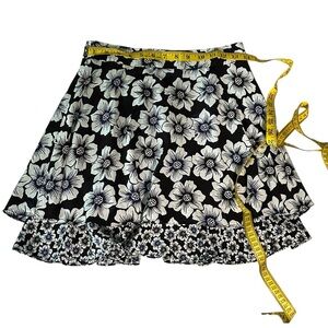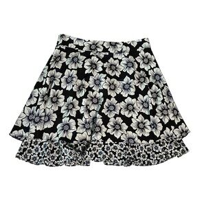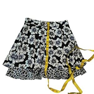 Kade Spade Hollyhock Double Layer Silk Blend Black Floral Print Mini Skirt Sz 4