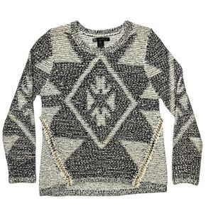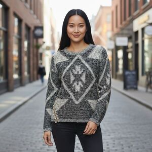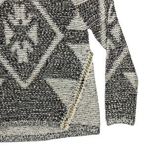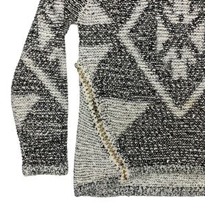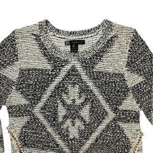 Kadence Sweater Womens L Black White Diamond Pattern Boho Chic Classic Academia