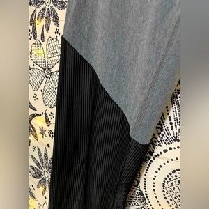 Kadyluxe black and grey leggings buttery soft like new condition, transitions from a super silky soft grey fabric to a textured ribbed black fabric. This is a very high end women-owned, American made brand based in Colorado. Pocket in waistband. No signs of wear. Size medium. Retails new for $96.