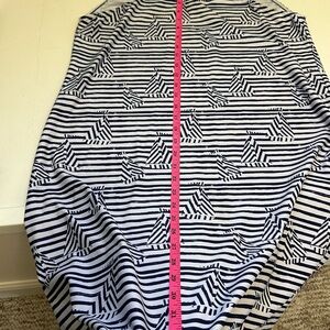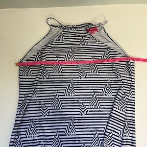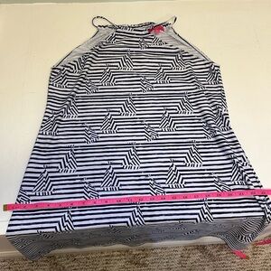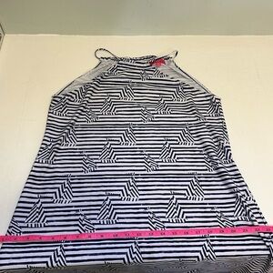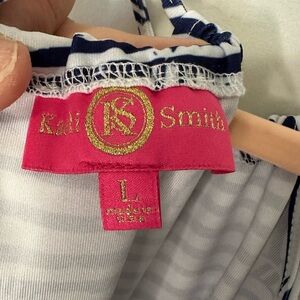 Stylish swim coverup by Kaeli Smith. Features a blue and white striped pattern. Perfect for beach days. Preston's condition pre-used no stains or tears. Made in USA. Size Large. Great to wear over swimsuit or even wear in the water with it!